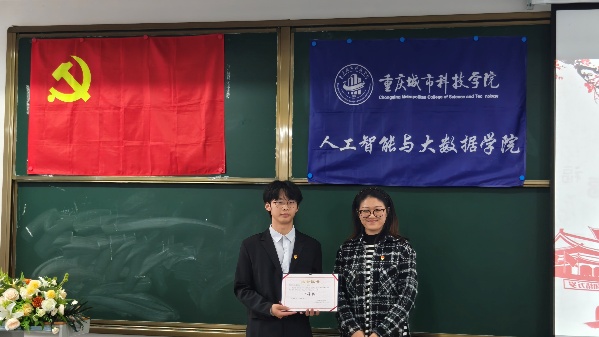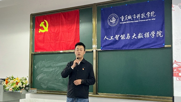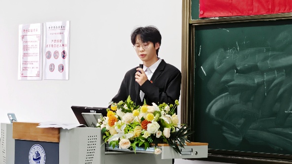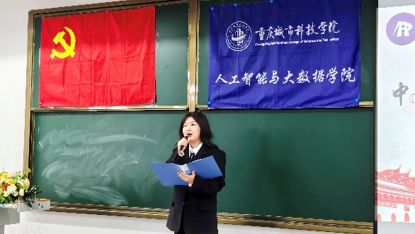 (学生第五党支部书记、党建工作站指导老师崔凤为此次大赛致辞)