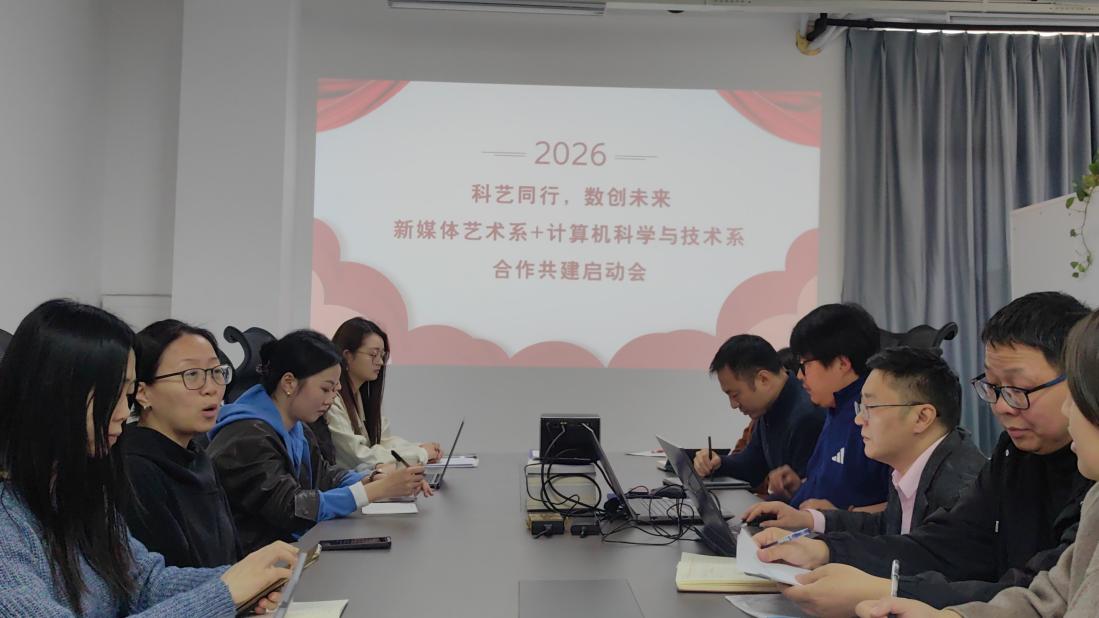 为深化推进重庆城市科技学院“新工科”与“新文科”建设,探索跨学科人才培养新模式,2026年3月11日,人工智能与大数据学院计算机科学与技术系同艺术与传媒学院新媒体艺术系联合召开了合作共建启动会。双方就学科深度融合、资源共享、联合育人等议题展开务实研讨,共同擘画“艺工融合、协同创新”的蓝图。计算机科学与技术系主任颜烨、副主任钟茂胜、实验中心副主任陈俊宇、新媒体艺术系主任王早及两系骨干教师共同出席会议。