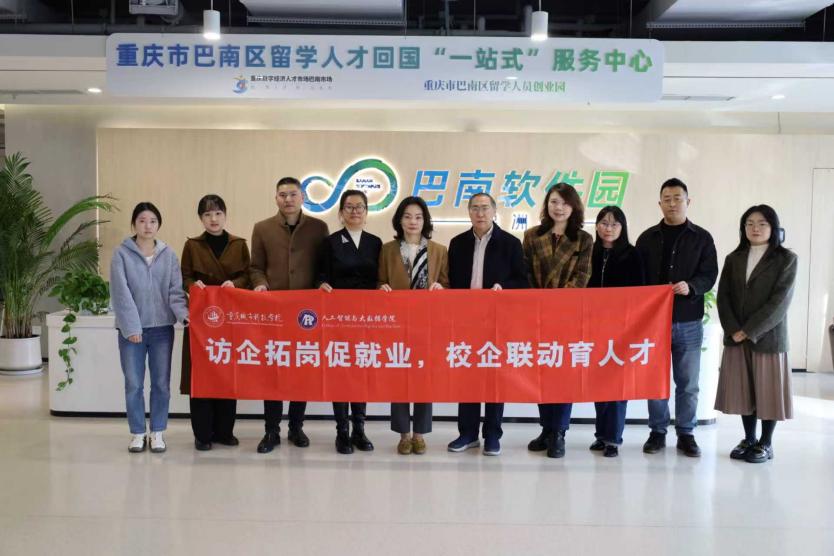为积极响应国家关于深化产教融合、促进高校毕业生高质量就业的号召,2025年11月19日上午,重庆城市科技学院人工智能与大数据学院院长谢显中、行政院长万毅、副院长符欲梅、副书记唐继龙及辅导员冉超成、尹琳惠一行,前往巴南软件园·星洲座开展访企拓岗交流活动。巴南区人力社保局党委委员、副局长彭绣华、巴南软件园分公司总经理杨向荣等对学院领导和老师的到访表示热烈欢迎。