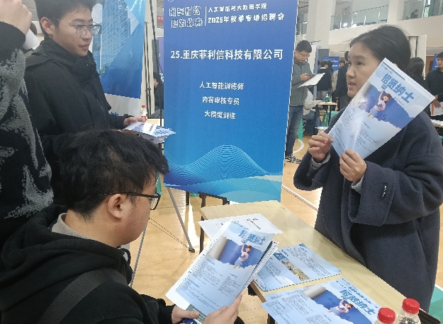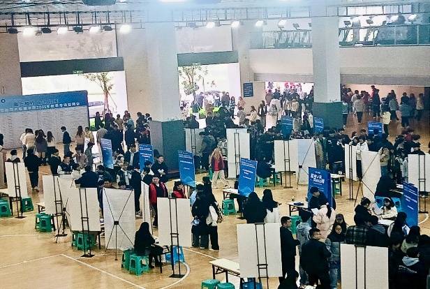 为搭建校企人才对接桥梁,助力2026届毕业生高质量充分就业,11月26日14:30,重庆城市科技学院人工智能与大数据学院携手新E代数字智能信息技术产业学院在巴南校区艺体中心一楼举办“周三相约 职为你来”2026届毕业生秋季专场招聘会。本次招聘会聚焦人工智能、大数据、计算机应用等核心领域,汇聚中创新航科技(武汉)有限公司、长兴吉利汽车部件有限公司、重庆菲利信科技有限公司等40余家优质企业,涵盖人工智能、大数据、软件开发、物联网等多个领域,提供岗位需求逾500个,吸引近千名毕业生到场求职。