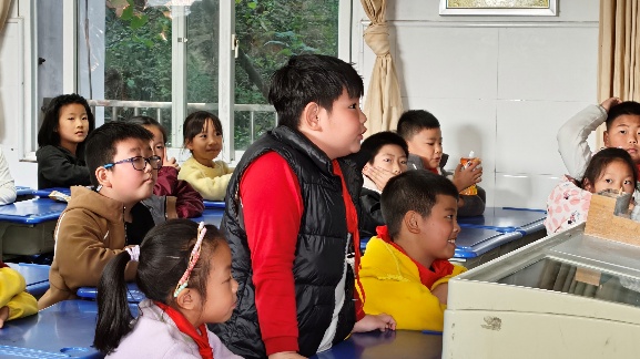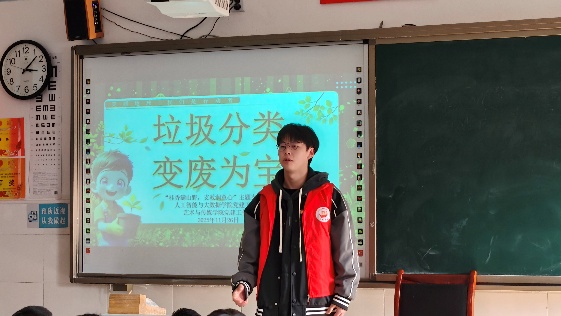 活动围绕“垃圾分类”“变废为宝”“赋予废品新生命”三大主题展开。志愿者们通过生动的PPT演示,为孩子们构筑环保知识的理论框架。在随后的趣味问答环节中,“废旧电池是什么垃圾?”“塑料瓶可以变成什么?”等问题引发同学们浓厚的兴趣,同学们踊跃分享自己的想法,在紧张活泼的互动中,环保知识的种子悄然扎根。