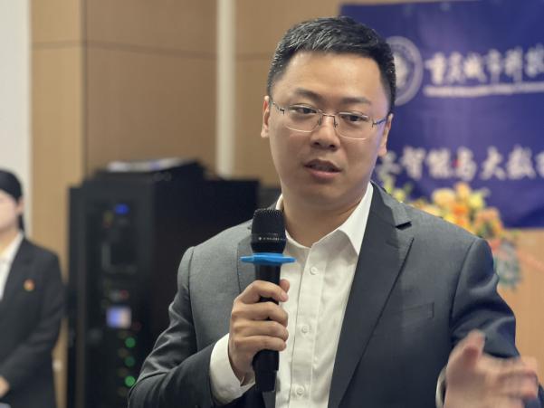 随后,两江新区青商会联席执行会长高志杰发言,介绍了商会自2016年成立以来的发展历程、组织架构与核心使命,重点强调了商会在搭建校企合作桥梁、促进学界与业界深度融合中的重要作用。他表示,此次走进校园是深化校企合作的重要一步,期待未来与重庆城市科技学院进一步拓宽合作领域、丰富合作形式,共同培养契合社会发展需求的新型实用人才。