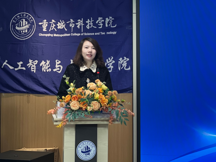 活动伊始,重庆城市科技学院巴南校区管委会副主任、学生工作办公室主任、校团委书记、人工智能与大数据学院行政院长万毅致辞。她对两江新区青商会企业家一行的到来表示热烈欢迎,并系统介绍了学校在应用型人才培养方面的理念与实践成效。她指出,学校始终坚持以社会需求为导向,推动课堂教学与行业发展深度衔接,此次校企交流为学生搭建了近距离了解行业、对话企业的实践平台。她希望同学们珍惜与企业家面对面交流的机会,在真实的行业经验中拓宽视野、启发思考、校准方向,将个人成长主动融入时代发展,走好自己的职业发展之路。