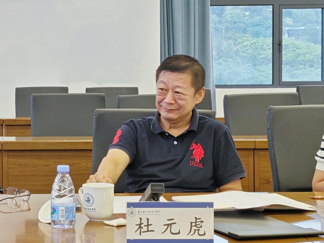 副校长杜元虎在讲话中充分肯定学院在师资建设、事业发展方面取得的成绩,并提出三点建议:一是进一步凝练学科专业特色,推动教育教学改革成果系统化、可视化;二是深化产教融合,整合校政企资源,提升产业学院建设实效与科研显示度;三是推动课程项目化改造,促进实践教学改革和教师能力双提升。