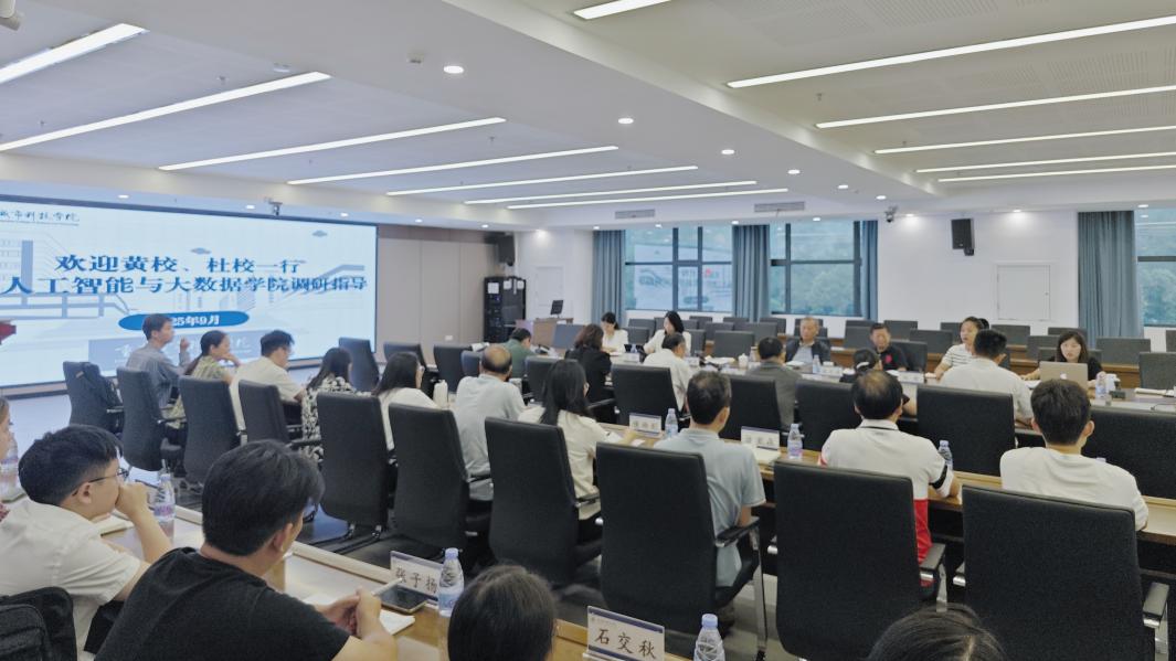 2025年9月12日上午,校长黄宗明、副校长杜元虎一行莅临人工智能与大数据学院,就学院建设现状、发展路径以及“十四五”收官与“十五五”谋划衔接等议题开展调研指导。相关职能部门负责人、学院领导班子及骨干教师代表参加调研座谈会。