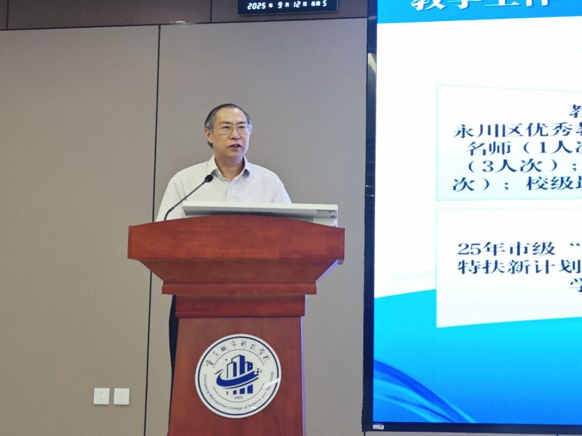 人工智能与大数据学院院长谢显中代表学院作系统汇报,围绕发展现状、标志成果、存在问题、未来规划与改革举措五个方面进行阐述,详细介绍了学院在专业建设、实验实训条件、师资结构、科研申报、校企协同等方面的进展与挑战。学院各分管领导则从教育教学改革、高质量就业、科研团队建设、党建与学生管理等方面作补充发言,展现出全院协同、共谋发展的良好态势。