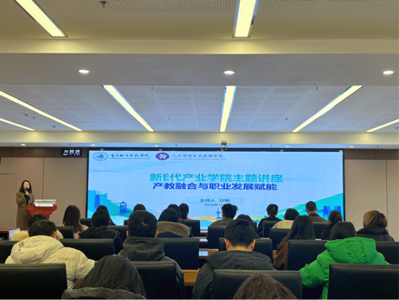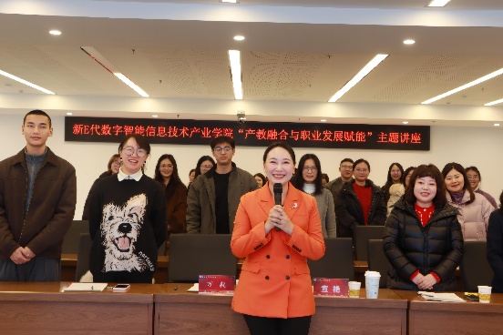 为深化产教融合育人机制,系统提升教职工职业素养与综合竞争力,2026年1月13日下午14:30,新E代数字智能信息技术产业学院“产教融合与职业发展赋能”主题讲座在图书馆829会议室顺利举行。本次讲座特邀金东方教育集团客户中心总监兼商务礼仪培训师宣艳担任主讲人,学院院务中心成员、教师代表、全体辅导员参加。本次讲座由人工智能与大数据行政院长万毅主持。