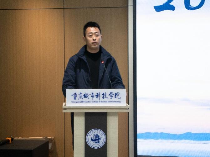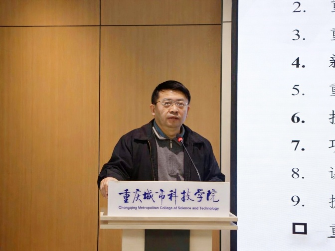 会议伊始,院长谢显中首先介绍了本次会议的背景与主要议程。本次全体教职工大会以学校提出的“招生-培养-就业”一体化改革为核心,以共同构建人才供应链上的闭环式“强生态”为目标。谢显中院长强调了新学期学院在招生、教学、科研、产教融合等方面的重点任务,号召全体教职工凝心聚力、务实笃行,共同推动学院高质量发展。